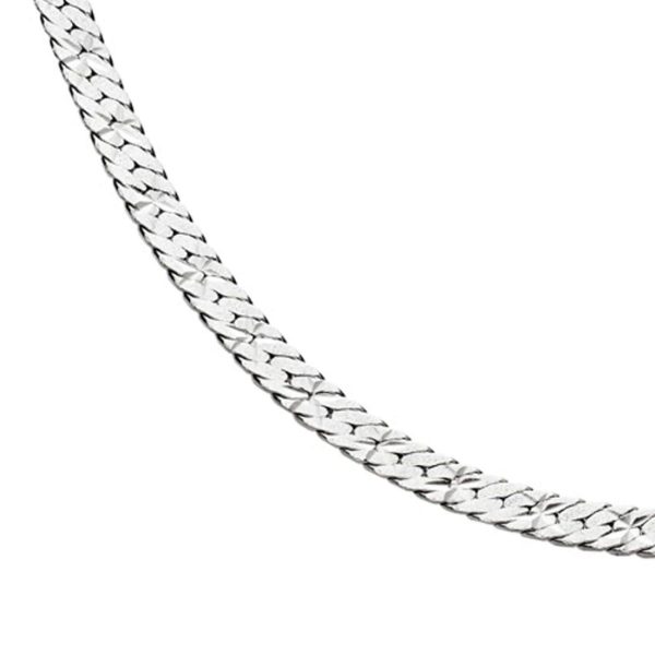 The Estée Lalonde Long Flat Snake Chain Necklace is crafted in sterling silver that sits elegantly on the collarbone making it a timeless piece.