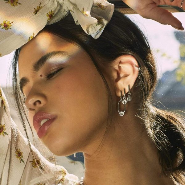 It’s double the hoop, double the fun with these guys. A statement pair, the Daisy Bloom Double Hoop Huggies look bloomin’ gorgeous worn in your first piercing for some statement bohemian style. Hand-crafted in 100% recycled sterling silver, featuring an engraved daisy flower on the lower hoop, they are the ultimate earring for those who approach life with an open heart and a sense of adventure that never ends.