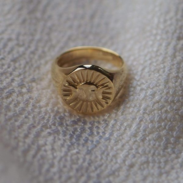 The Estée Lalonde Goddess Medallion Signet Ring is also available in silver.