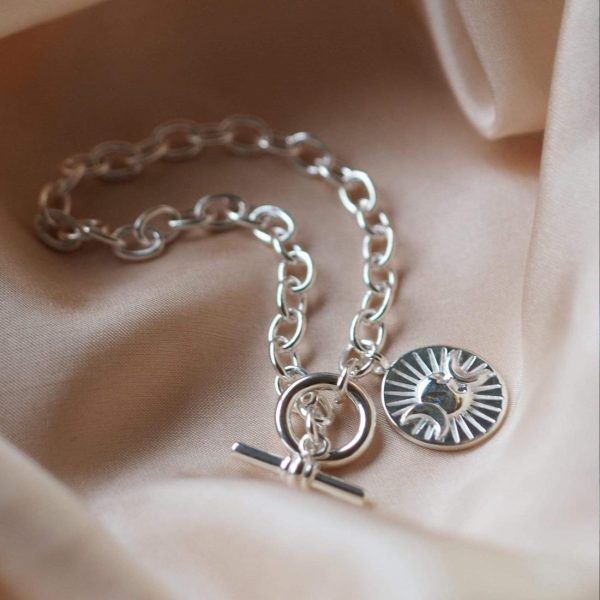 Dive into Estée Lalonde for Daisy with the Goddess Medallion T Bar Bracelet, the definition of contemporary chic. Crafted in sterling silver, this piece comes complete with a medallion style goddess charm and T Bar fastening for a classic yet cool styling.