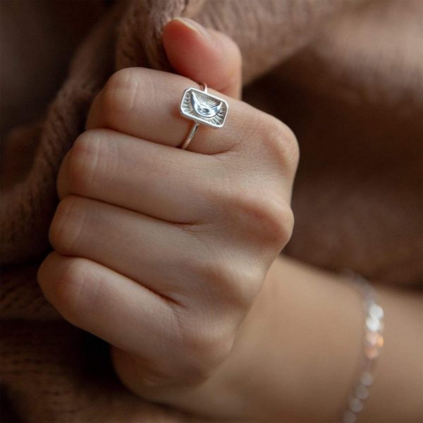 The search is over: your new favourite ring is finally here. The Luna Ring, handcrafted in sterling silver, has a delicately carved crescent moon on a textured framed backdrop. Style her solo or add to your Goddess ring stack as the perfect everyday, statement piece.