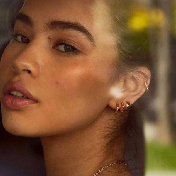 The Eve Huggie Hoop Earrings are a layering dream. Hand-crafted in 18ct gold plate, they fuse together artisan details with classic shapes. For a fresh take on stacking double up these essential huggies.