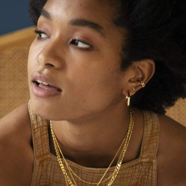 We’re just a little bit in love. Hand-crafted in 18ct gold plate these eye-catching huggies are the essential everyday piece. Whether you have two piercings or ten, the Malala Huggie Hoop Earrings are a must-have.