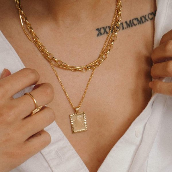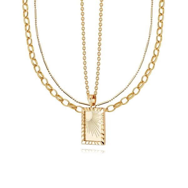 Say hello to the ultimate necklace layering set. Mix & match a chunky chain with a delicate bead and bar lightweight chain combo with your new favourite sun necklace. This set oozes radiance and style and you’ll wonder how you ever lived without it. Each piece is carefully crafted in 18ct gold plated silver making it dazzling and beautiful but easy on the eyes, just how we like our jewellery.