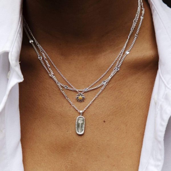 A flower that will last forever. The Daisy Necklace is crafted in sterling silver with a soft matte finish and features a slim pendant with an engraved daisy. Set on a figaro chain, this pendant necklace is perfect styled solo or layered with your favourite Daisy London chain necklaces.