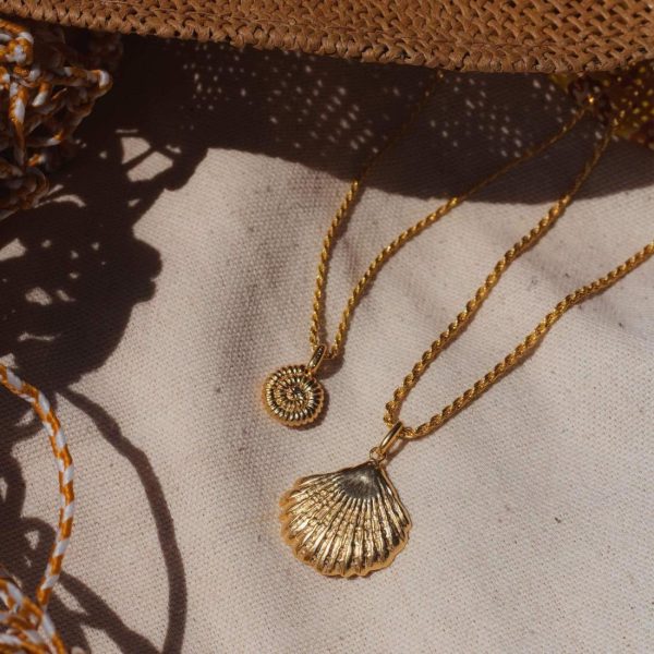Sure to be the hero of your jewellery collection, the Isla Large Shell Necklace is made from 18ct gold plated silver and features a solid, engraved clam shell hanging from a long length thick rope chain and fastens with a lobster clasp.
